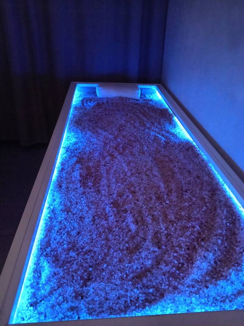 Mentre il corpo si rigenera sul sale, i sensi vengono cullati dalla Cromoterapia. Il lettino emana cicli di colori studiati per influenzare positivamente il tuo stato d'animo: